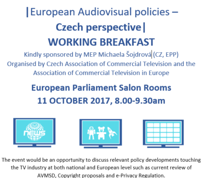 On 11 October, 2017, ACT together with AKT organised a working breakfast for Czech Members of European Parliament to discuss relevant policy developments touching the TV industry at both national and European level such as AVMSD, Copyright proposals and e-Privacy Regulation.