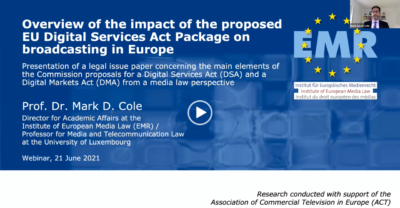 ACT speaks at the EMR presentation of legal issue paper “Impact of the proposed Digital Services Act Package on broadcasting in Europe”