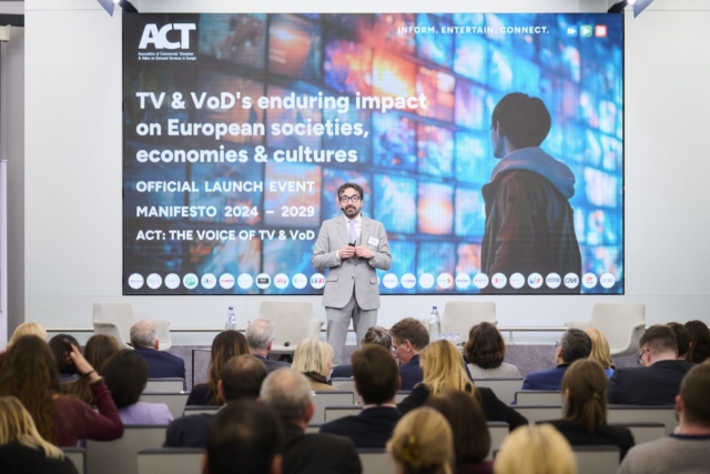 The event, “TV & VOD’s Enduring Impact on European Societies, Economies & Cultures,” marked the official release of the ACT MANIFESTO 2024-2029. On this occasion, commercial TV and VOD service CEOs from across Europe gathered in Brussels to deliver a unified message.
