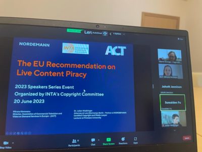 On 20 June, Miruna Herovanu, ACT Director, spoke at the online event on the EU Recommendation on Live Content Piracy, organised by the International Trademark Association Copyright Committeee.