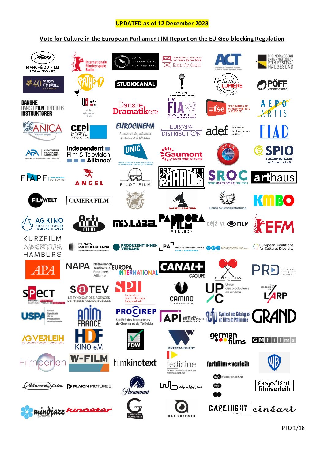 Joint statement: Vote for Culture in the European Parliament INI Report on the EU Geo-blocking Regulation